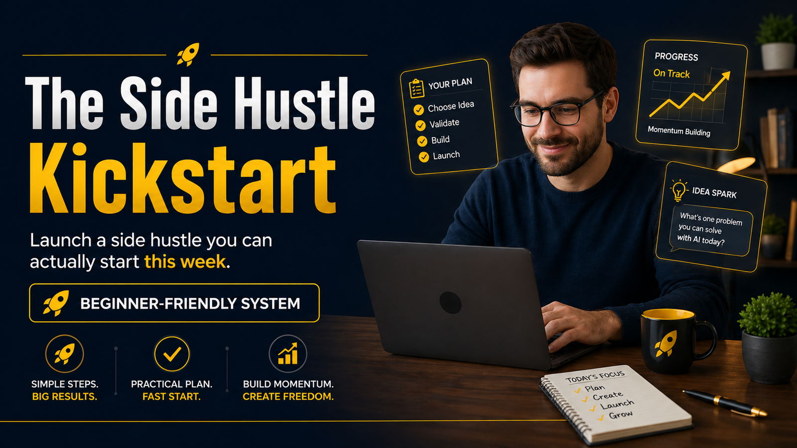 For starters, check out The Side Hustle Kickstart that helps you launch your side hustle this week! This comprehensive guide is designed with actionable steps and valuable resources tailored specifically for aspiring entrepreneurs like you who are ready to take charge of their financial future. It offers insights into identifying profitable ideas based on market demand while equipping you with tools needed to navigate challenges successfully as you embark on this exciting journey to start a side hustle. Don't wait any longer; seize this opportunity and watch how it transforms your life.